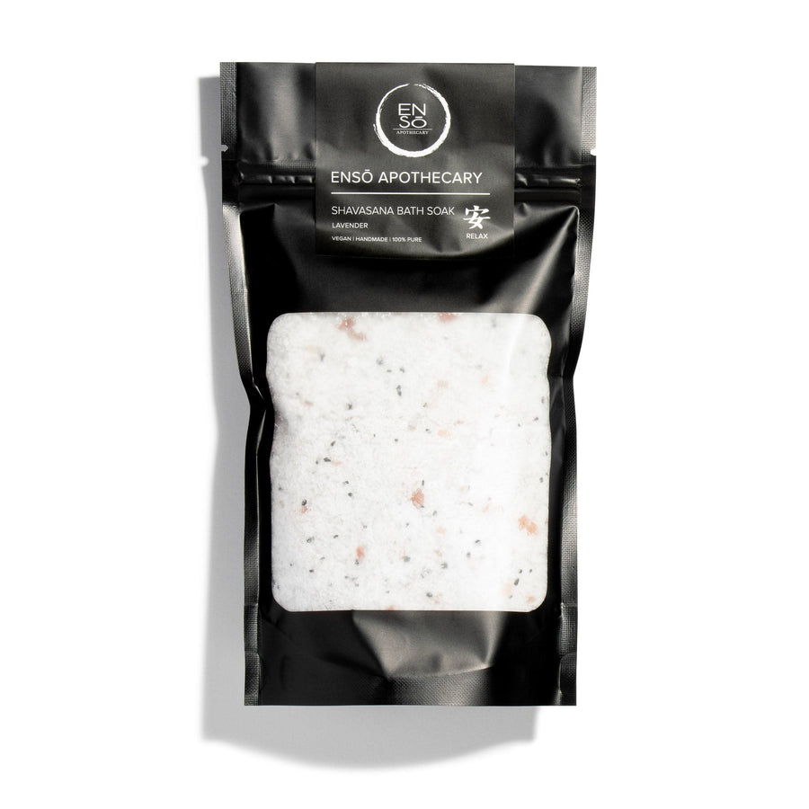 End your day with a grounding soak: choose between Shavasana Eucalyptus for clarity or Lavender for deep relaxation. Complete the ritual with our Namasté Cool Lip Balm for a refreshing finish, all conveniently packed in a sleek black mesh cosmetic bag and our signature Ensō Gift Box with Bow.