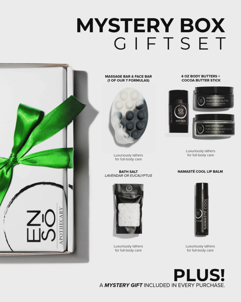 Discover the joy of curated self-care delivered right to your door. Our Ensō Apothecary Mystery Box is a Coconut-powered, ZEN-FUELED skincare ritual designed to nourish your skin and elevate your everyday wellness. Available as a one-time purchase or a monthly subscription, each box features a hand-selected, curated assortment of Ensō favorites—crafted with pure, earth-grown ingredients and rooted in ancient rituals.